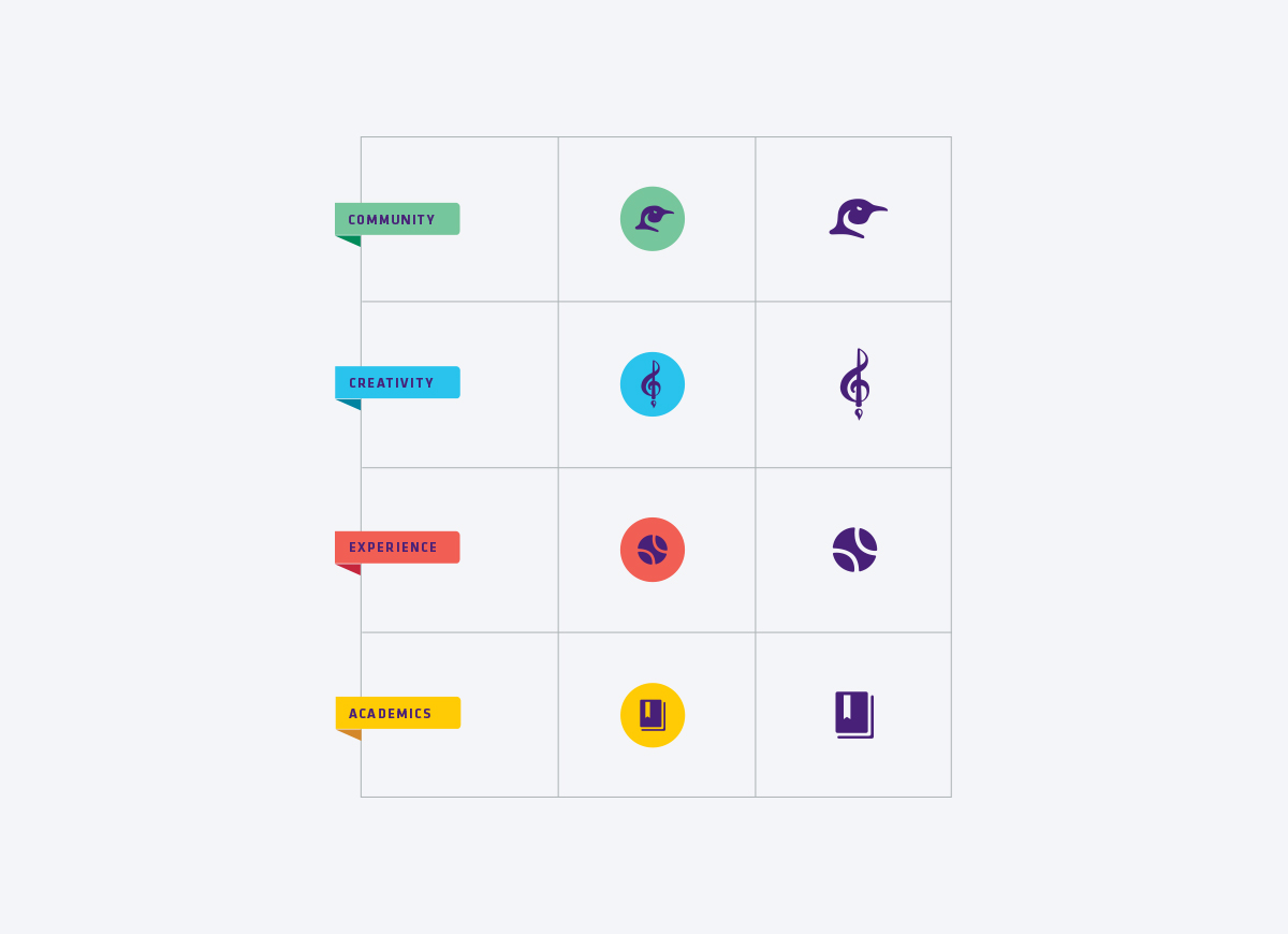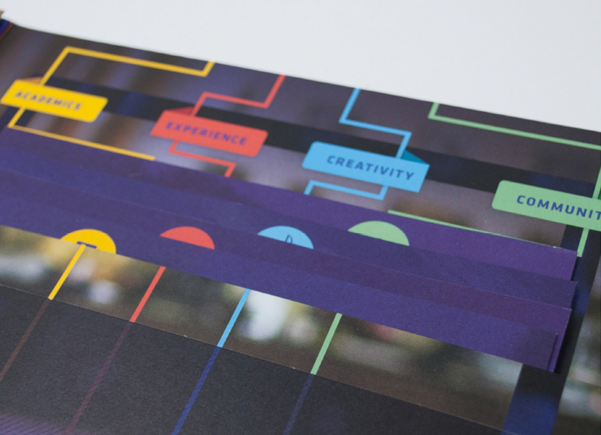 Cushing Academy is an independent boarding school established in 1865 and known for strong programs in academics, athletics, and arts. The rebrand consisted of a new logo based on an iconic building on campus, and recruitment materials to express Cushing’s holistic approach to education. The viewbooks feature a set of icons representing different areas of interest for prospective students, and can be arranged in a customizable packet to speak to the interests of individual students. Brand guidelines also included a visual standards for atheltics branding, signage, and apparel design.